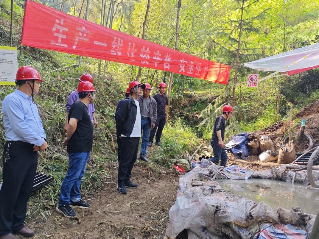 4月11日,集團公司副總經理胡剛一行前往二一四大隊寧強縣黃泥坪金礦詳查項目檢查指導工作。公司總經理司金強、副總經理冉軍林、安環部副部長張文斌、地調院副院長仇金林等陪同檢查。